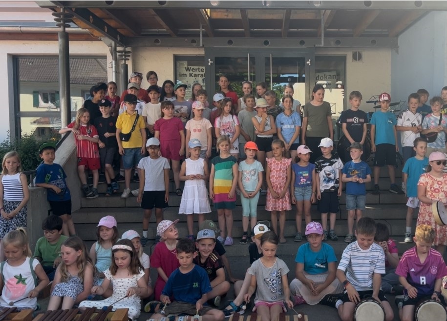 Am 30. Mai 2025 wurde der Schulhof der Grundschule Tunsel zum fröhlichen Treffpunkt für Groß und Klein – beim diesjährigen Schulhock feierten Kinder, Eltern und Lehrkräfte gemeinsam ein buntes und gelungenes Fest. Eröffnet wurde der Nachmittag mit einem gemeinsam Lied aller Schülerinnen und Schüler. Danach gab es weitere musikalische Beiträge der Bläserklasse unter der Leitung von Sebastian Kroll. Ein besonderes Highlight war der Kinderflohmarkt. Die Kinder hatten viel Freude beim Verkauf von gebrauchten Spielsachen und Büchern. Für das leibliche Wohl sorgte ein abwechslungsreiches Fingerfood-Buffet, zu dem viele Eltern liebevoll selbstgemachte Beiträge beisteuerten – herzlichen Dank an alle Spenderinnen und Spender! Ein großes Dankeschön geht auch an den Elternbeirat, der das Fest organisiert hat und die Gäste mit Getränken und Waffeln verpflegt hat. Ebenso ein Dankeschön an den Förderverein, der einen Stand mit Glitzer-Tattoos angeboten hat.