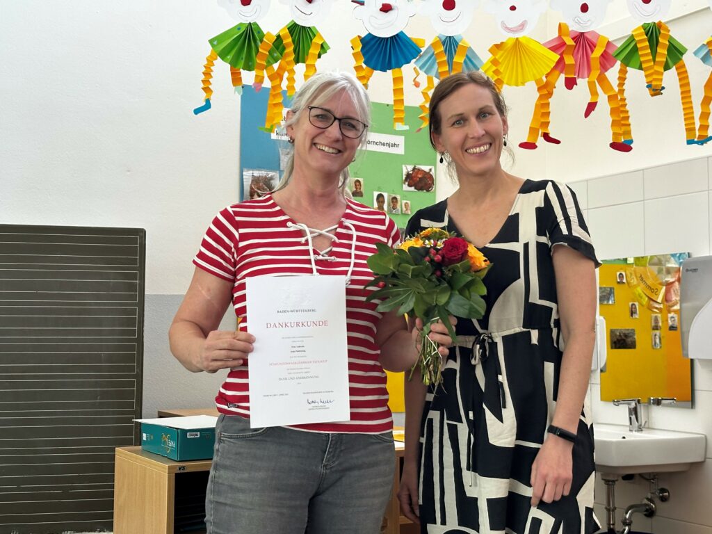 Mit großer Freude gratulieren wir Frau Pfaff-König zum 25-jährigen Dienstjubiläum. Seit einem Vierteljahrhundert prägt sie das Schulleben mit Geduld und einem großen Herzen für Kinder. Mit ihrem Einsatz, ihrer fachlichen Kompetenz und ihrer liebevollen Art hat sie Generationen von Schülerinnen und Schülern nicht nur das Lesen, Schreiben und Rechnen beigebracht – sondern auch Werte wie Respekt und Zusammenhalt vermittelt. Wir danken Frau Pfaff-König für Ihren Einsatz und freuen uns auf viele weitere Jahre mir ihr!